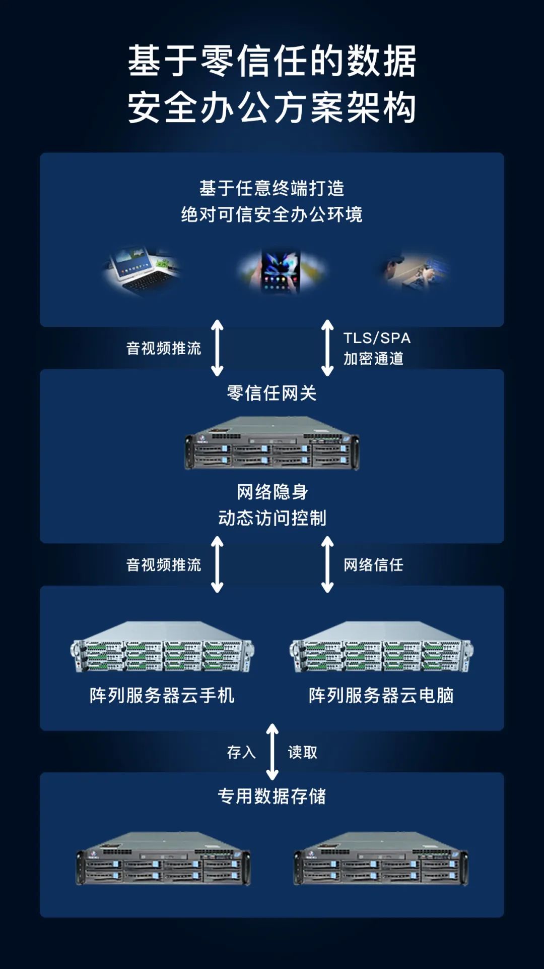 瑞驰与合作伙伴面向党政央企、公检法司等联合推出基于零信任的云手机安全办公方案,让任意终端绝对安全接入内外网办公成为可能。